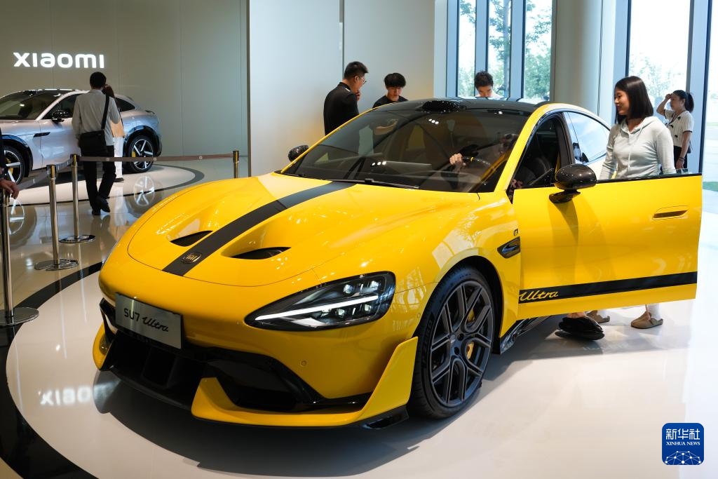 6月16日,參觀者在北京小米汽車工廠的體驗中心了解SU7 Ultra汽車。