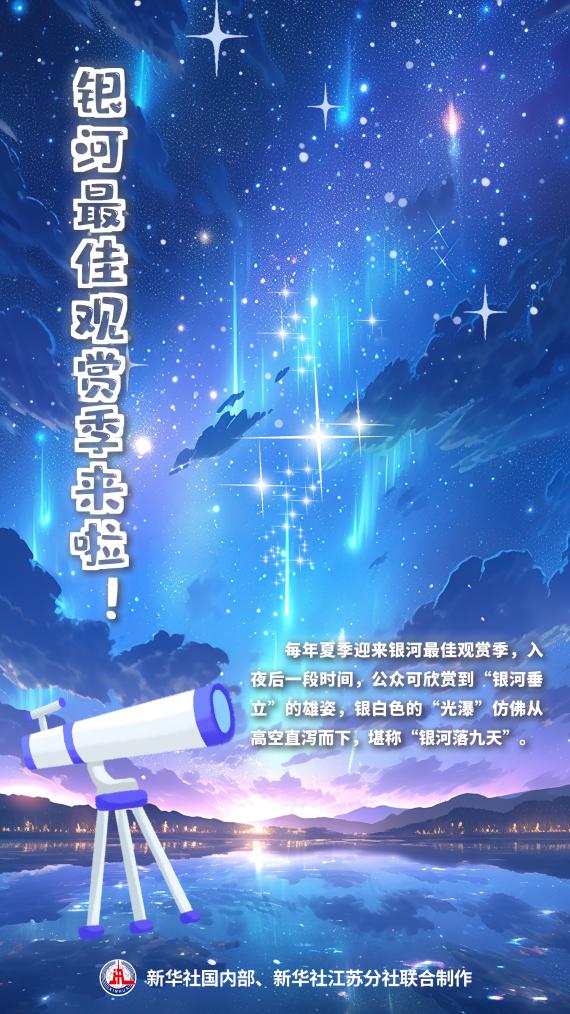 新華社南京7月15日電(記者王玨玢、朱筱)每年夏季迎來銀河最佳觀賞季,入夜后一段時間,公眾可欣賞到“銀河垂立”的雄姿,銀白色的“光瀑”仿佛從高空直瀉而下,堪稱“銀河落九天”。
