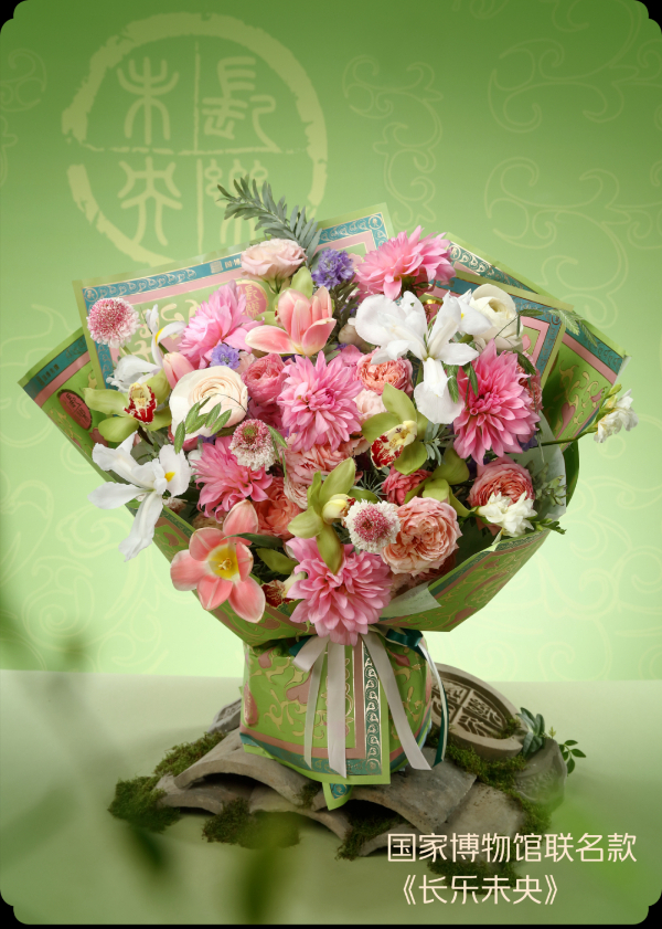 此后,美團閃購相繼與以頤和園為代表的重量級中式IP展開合作,將《千里江山圖》的青綠山水、漢代“長樂未央”瓦當的吉祥寓意等諸多寶貴文化遺產,通過花藝語言重新演繹。