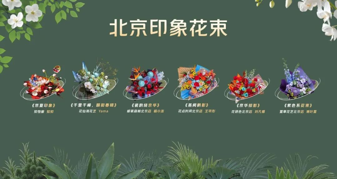 經過嚴格評審,最終從眾多參賽作品中脫穎而出的六款“北京印象”花束在本次大會上發布,這些花束以北京歷史古韻、民俗風情與現代風貌為創作靈感,選用玉蘭、月季等本土花卉,輔以琉璃藍、宮墻紅等傳統色系配葉,詮釋“留白、疏密、意境”的中式美學精髓,為花園城市打造了一張靚麗的新名片。