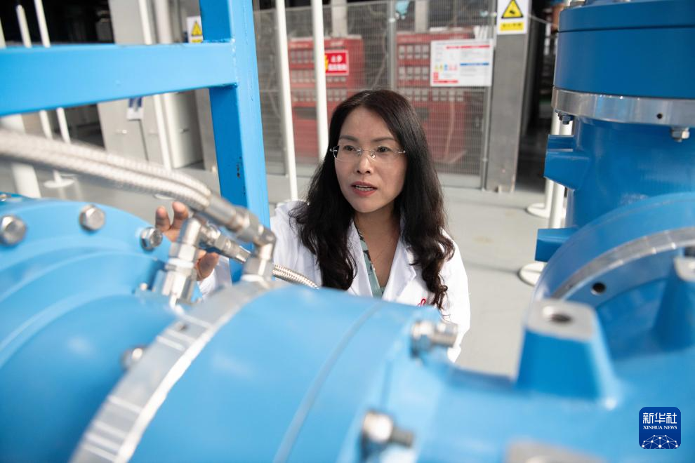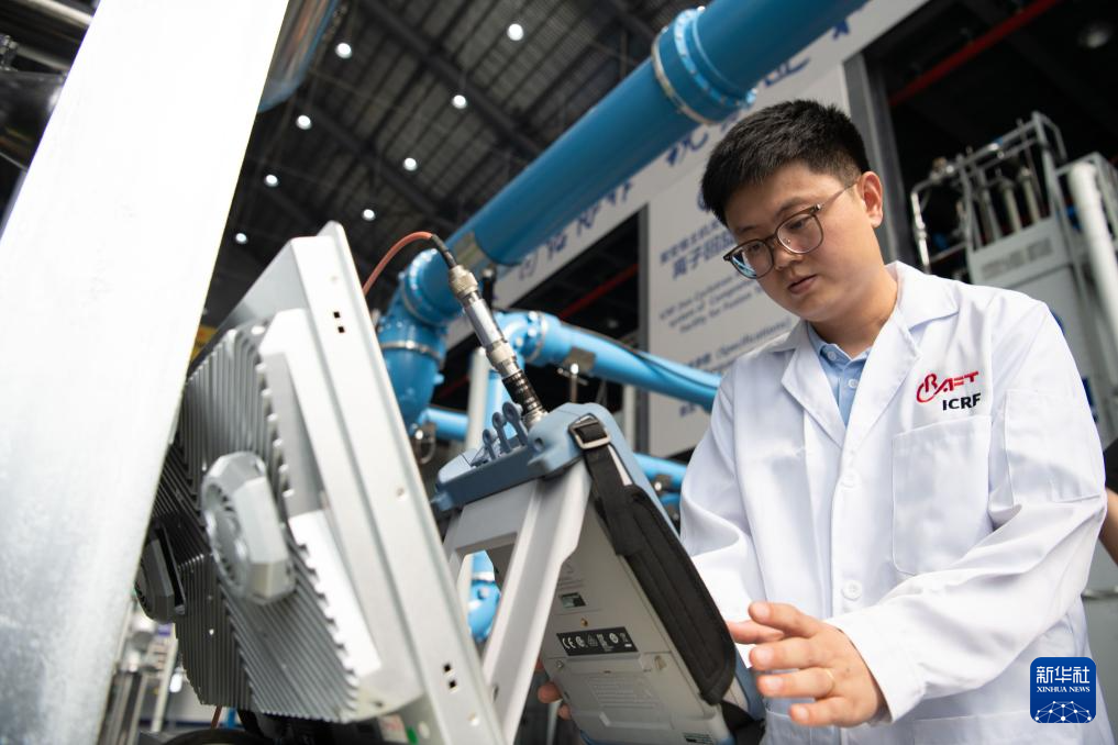 9月11日,在位于合肥市的聚變堆主機關鍵系統綜合研究設施園區內,科研人員在查看離子回旋加熱系統的運行狀態。新華社記者 張端 攝