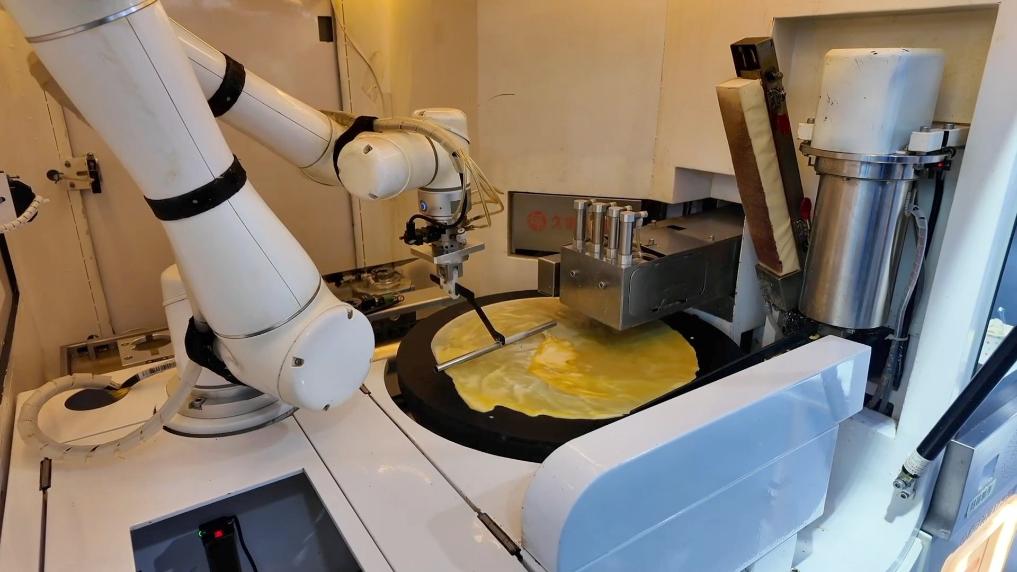 展區里的煎餅果子機器人引起了不少參觀者的好奇。