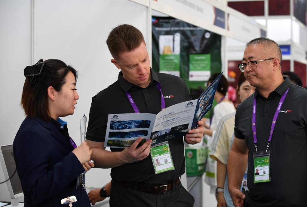 9月17日,在廣西南寧國際會展中心,人們在展覽現場交流。新華社記者 陸波岸 攝
