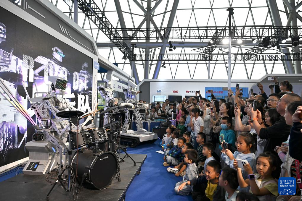 9月20日,觀眾在2025世界制造業大會上觀看機器人樂隊表演。