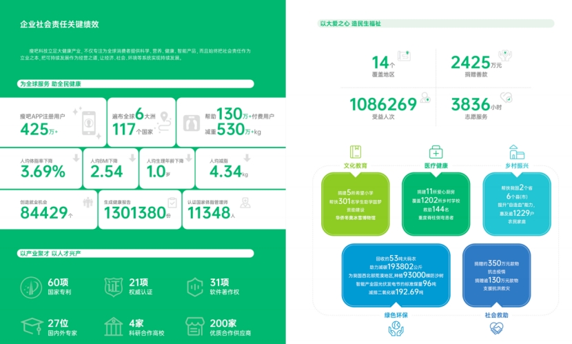 因責任散發溫情,從善意到善行。正是肩負著全民健康的企業社會責任,瘦吧科技始終從心出發,將善意化為實實在在的行動。企業及其基金會--中食安泓愛心公益基金會積極在醫療健康、文化教育、綠色環保、社會救助、鄉村振興五大領域開展超過20多項公益行動,累計向社會捐贈超過2425萬元,超過108萬人受益。