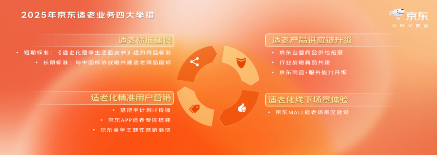 京東零售家電家居事業群建材業務部負責人在題為《2025年居家適老化改造近年成果及戰略升級》的主題分享中宣布了京東適老業務的四大舉措。一是正式構建適老市場化標準;二是在標準指引下,逐步推動整個適老行業供應鏈升級;三是在線下京東Mall開設適老產品展示專區,承接適老商品的體驗工作;四是在適老標準指引下做好線上體驗,做好線上精準營銷,不斷優化升級居家養老全場景解決方案,切實提升老年人生活品質。