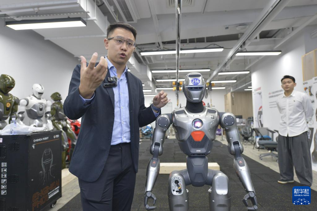 10月29日,在廣東深圳,眾擎機器人科技聯合創始人姚淇元介紹機器人“小眾”。新華社記者 劉力航 攝