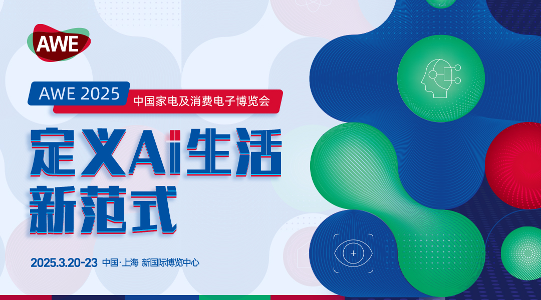 "3月20-23日,2025年中國家電及消費電子博覽會(AWE2025)將在上海新國際博覽中心舉行。"
