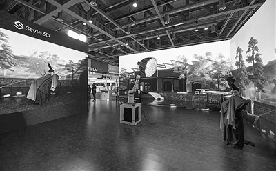 這是12月12日在首屆全球數字貿易博覽會現場拍攝的數字影棚,數字影棚可以把鏡頭前的人實時融入到虛擬場景中。新華社記者 徐昱 攝