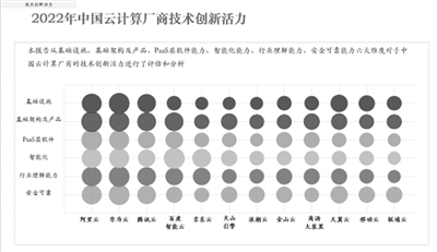 云計算作為數字經濟的底座,在我國已歷經14年的發展,在技術創新、產品能力方面已經取得了長足的進步。報告從基礎設施、基礎架構及產品、PaaS層軟件能力、智能化能力、行業理解能力、安全可靠能力六個維度,對云計算廠商的技術創新活力進行了研究和分析。