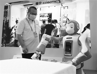 一款會“擦桌子”的智能家居服務機器人。該機器人具備移動輔助、衛生保潔等多種功能,可應用于醫院、養老院、社區等不同環境。資料照片
