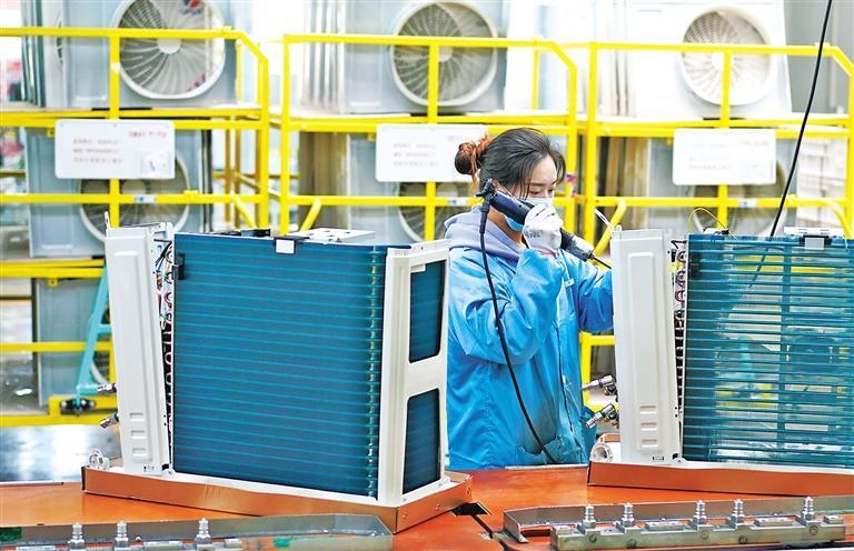 2022年家電行業承壓前行,升級步伐加快。圖為在格力電器(南京)有限公司,員工在生產車間忙碌。季春鵬攝(新華社發)