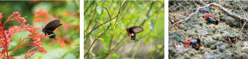 除了植物種類多樣,荔枝窩淡水濕地區也是百余種淡水生物的天堂,以及許多鳥類、蝴蝶、蜻蜓和爬行動物的重要生態棲息地,包括瀕臨絕種的黃胸鹀和稀有的燕鳳蝶。多樣的生物賦予了荔枝窩更強的生命力與活力,奏響植物與生物和諧共生的交響樂。