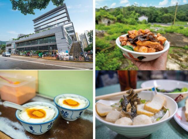 大埔墟街市(左一),客家紅燒豬肉(右一),豆腐花(左二),魚蛋粉(右二)(圖片來源:香港旅游發展局)