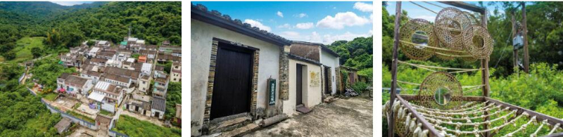 荔枝窩村(左),荔枝窩文化館(中),客家傳統民俗展品(右)(圖片來源:香港旅游發展局)