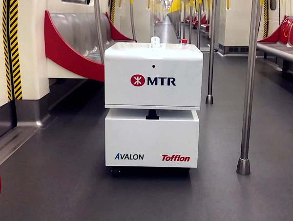至于港鐵則使用另一款機器人,在車站和列車車廂內自動運作,進行消毒。港鐵共有20臺機器人,在車廠內進行清潔工作,以確保車廂干凈衛生,維護乘客的安全。