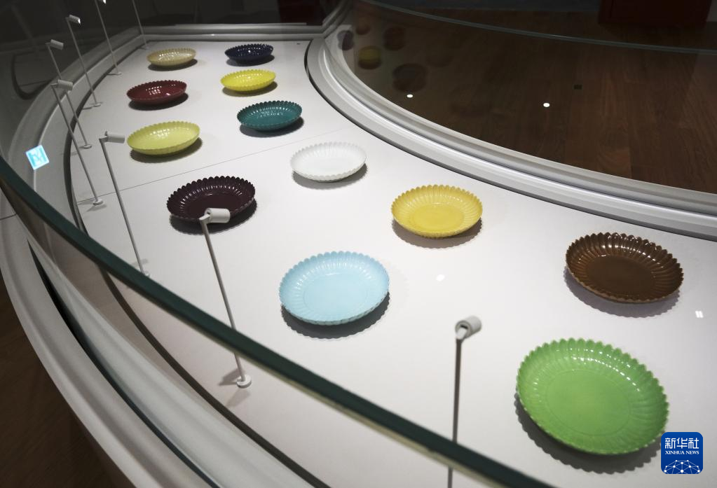 6月28日在香港故宮文化博物館拍攝的清代各色釉菊花式盤。