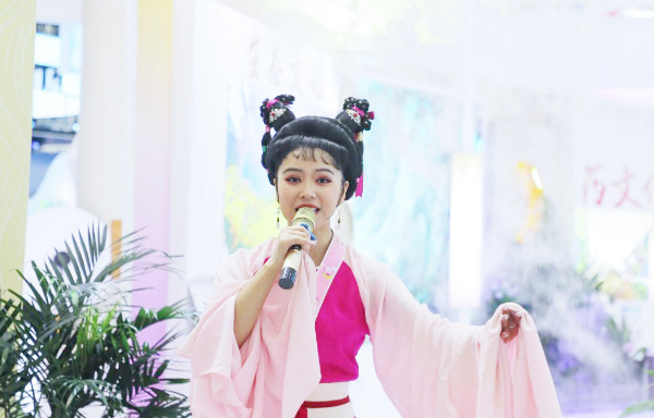 黃梅文旅形象大使、黃梅戲青年演員鄧明珠清唱經典黃梅戲《樹上的鳥兒成雙對》引起巡館領導的極大興趣。