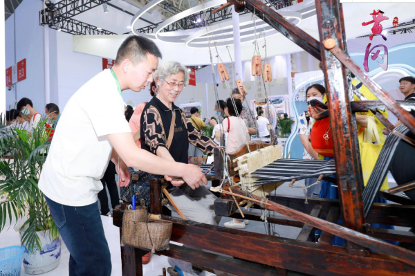 黃岡紅安縣是鄂豫皖革命根據地。紅安手工繡活、古老的織布機展現大布傳統紡織技藝,吸引了大量觀眾圍觀。