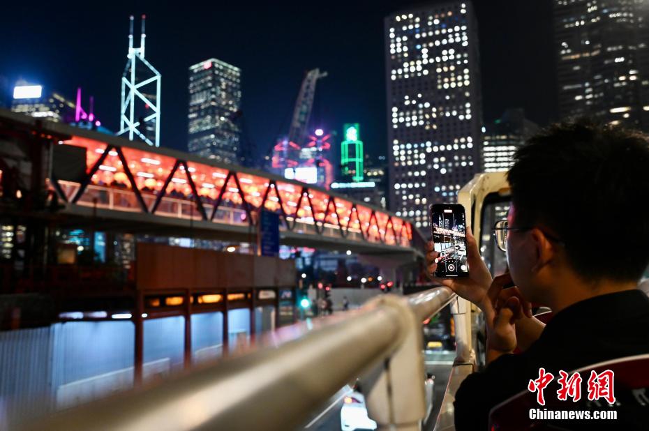 乘客乘搭觀光巴士參與夜游香港島活動。中新網記者 李志華 攝