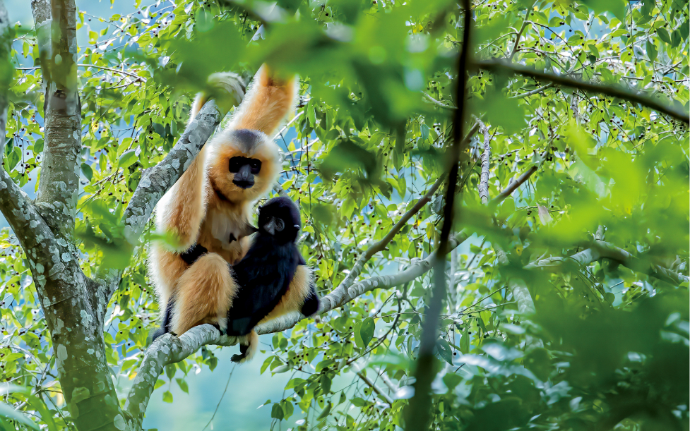 自第一批國家公園設立以來,東北虎豹國家公園內野生東北虎達到70只左右,野生東北豹達到80只左右,去年新增野生東北虎幼崽20只、野生東北豹幼崽15只。大熊貓野外種群總量從20世紀80年代約1100只增長到近1900只。三江源地區藏羚羊種群數量已經恢復到約30萬只,保護級別已從“瀕?!苯禐椤敖!?。武夷山國家公園新發現雨神角蟾、福建天麻、武夷林蛙等多個新物種。海南熱帶雨林國家公園霸王嶺片區是全球最瀕危靈長類物種海南長臂猿唯一分布地。海南長臂猿種群數量由5群32只增長到6群37只,是全球現存10只以下極危物種中,唯一基于自然恢復的成功案例。
