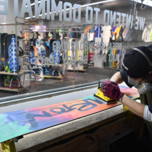 在陜西西安市一家滑雪裝備店里,店面負責人趙凱在保養客戶的滑雪板。新華社記者 邵瑞 攝