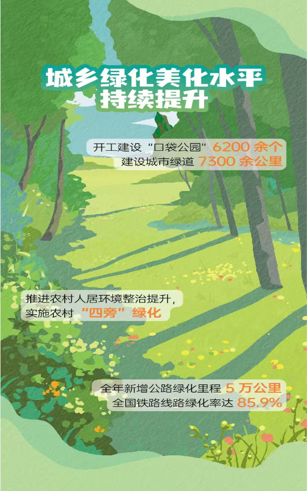 新華網北京3月12日電(郭香玉)3月12日,是我國第47個植樹節。全國綠化委員會辦公室發布《2024年中國國土綠化狀況公報》顯示,2024年全國完成營造林444.6萬公頃、種草改良322.4萬公頃、治理沙化石漠化土地278.3萬公頃,我國森林覆蓋率超25%,森林蓄積量超200億立方米,國土綠化工作取得新成效。