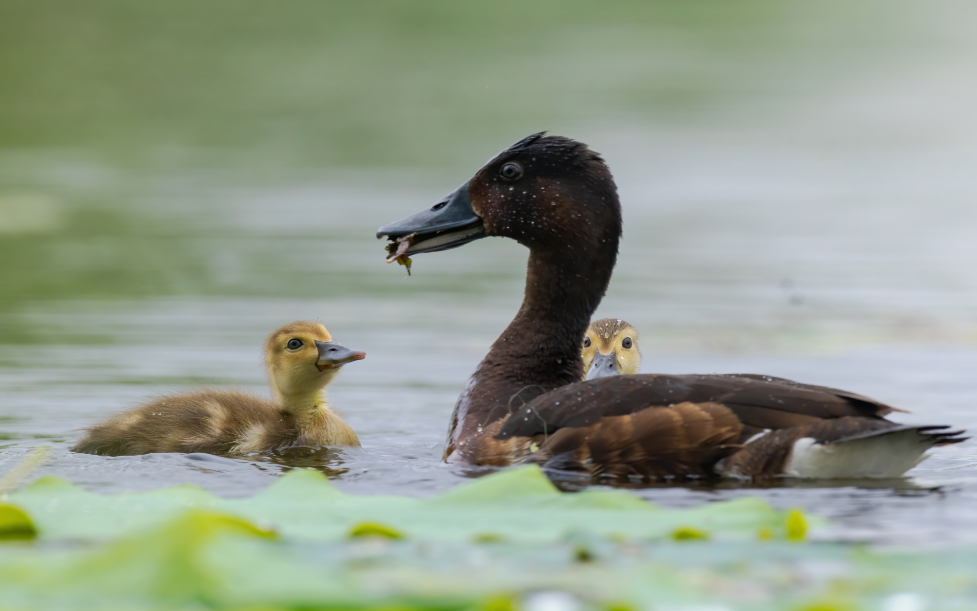 青頭潛鴨育雛 牛郢生攝(國家林草局供圖)