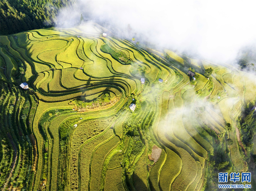 8月27日,在貴州省從江縣加鳩鎮加鳩村拍攝的梯田(無人機照片)。新華網發(吳德軍 攝)