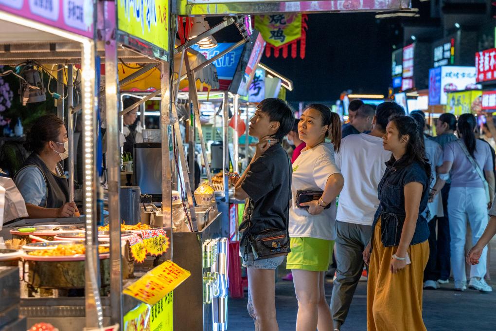 2025年10月19日,市民和游客在廣西梧州市長洲區紅嶺街道水云天夜市品嘗當地美食。CICPHOTO/何華文攝