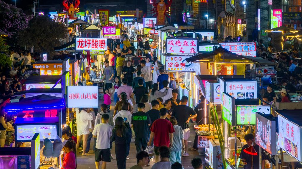 2025年10月19日晚,廣西梧州市長洲區紅嶺街道水云天夜市燈火璀璨、人潮涌動。市民和游客穿梭于攤位間,品嘗當地特色美食,盡情享受豐富多彩的夜生活。
