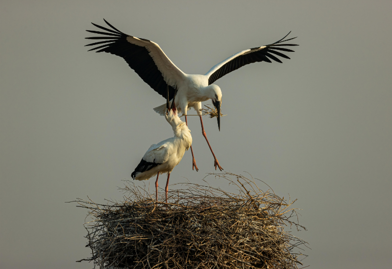 銜枝筑巢的東方白鸛。國家林草局供圖