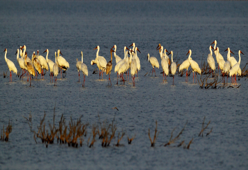 清晨的白鶴(山東黃河三角洲國家級自然保護區)。國家林草局供圖