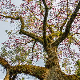 或許在它還是一棵小樹的時候,它的周遭還有很多參天大樹,它們甚至比眼前這棵青岡王還要高大挺拔,但如今都見不到它們的身影,只有它孤獨地幸活下來,它活出了一片森林的斷代史。