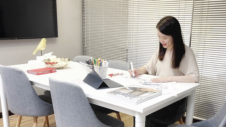 圖為臺灣建筑設計師黃潔如在工作(2021年8月30日攝)。新華社發(受訪者供圖)
