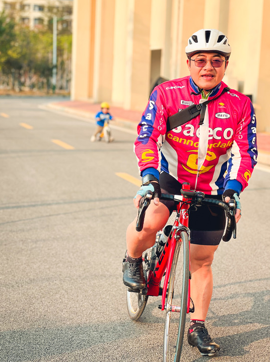 沙部·魯比在南寧師范大學(武鳴校區)騎自行車環校園(資料照片)。新華社發