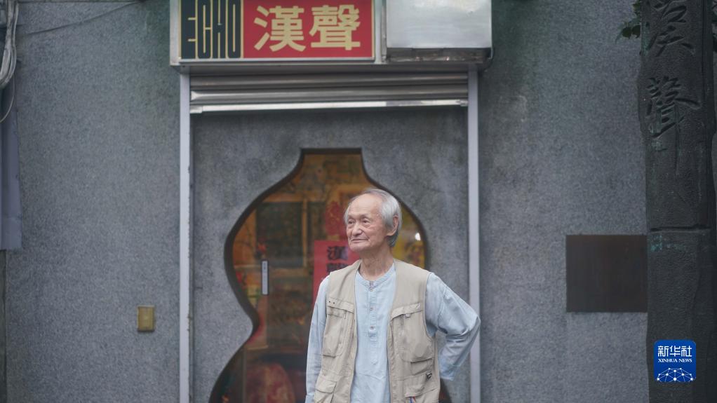 黃永松站在漢聲書店的門前(3月29日攝)。新華社記者 黃揚 攝