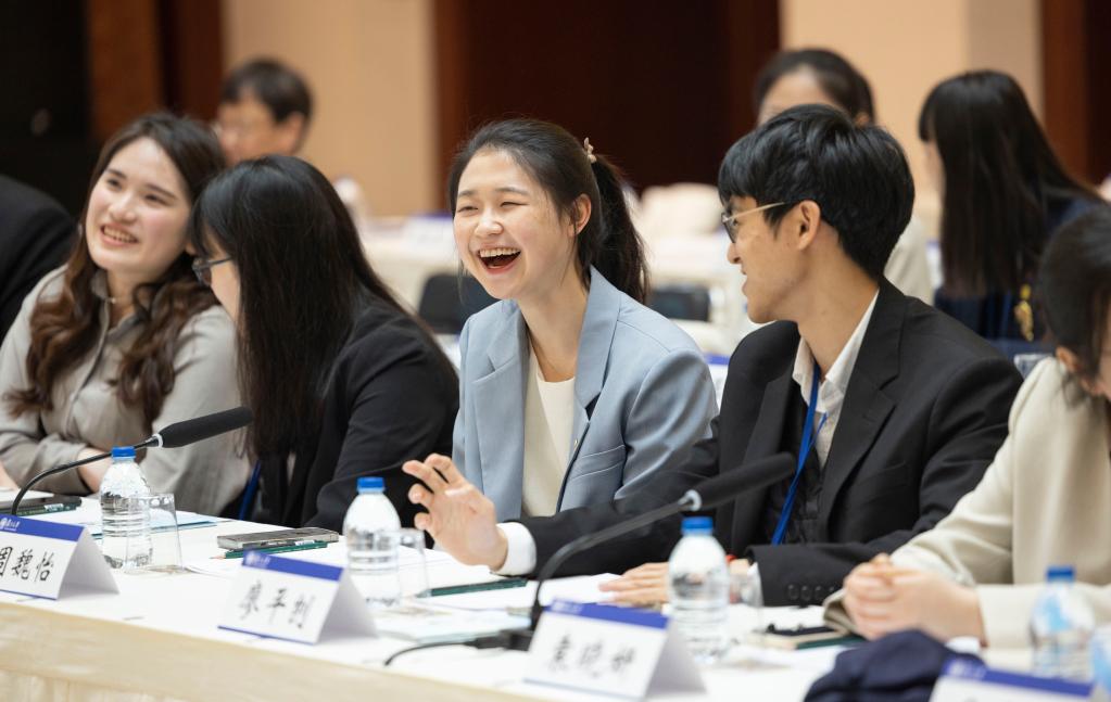 4月6日,在上海復旦大學的光華樓,臺灣青年學生與復旦大學學生交流座談。新華社記者才揚 攝