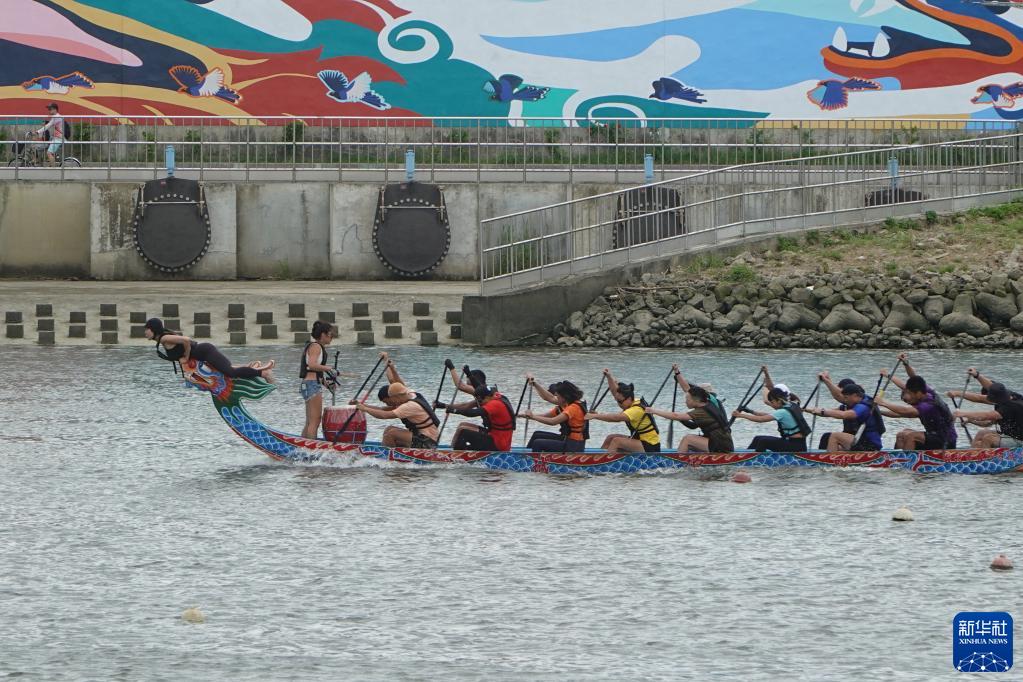 當天,位于臺北市中山區的大佳河濱公園游人如織,2023臺北龍舟錦標賽在此開賽?;『由?,一艘艘龍舟自大直橋下出發,自東向西競渡,鼓聲響動;基隆河兩岸,民眾的加油聲與吶喊聲此起彼伏。
