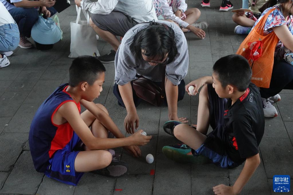 6月22日,民眾在臺北市大佳河濱公園參與端午節傳統的立蛋活動。新華社記者 尚昊 攝