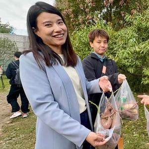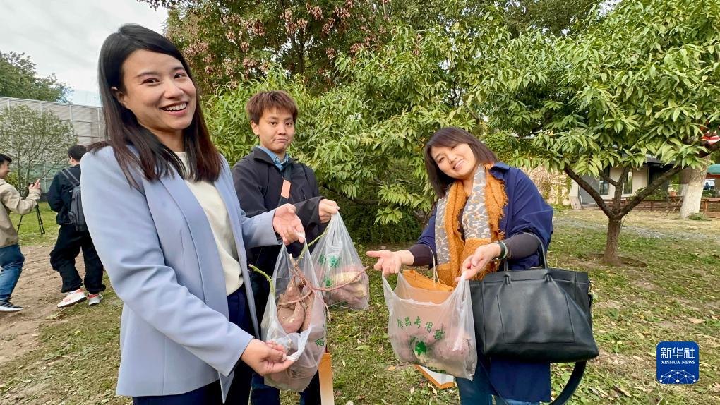 “我從沒下地干過農活,這還是第一次呢?!迸_灣東森新媒體ETtoday記者任以芳提著一袋“勞動果實”很是開心。