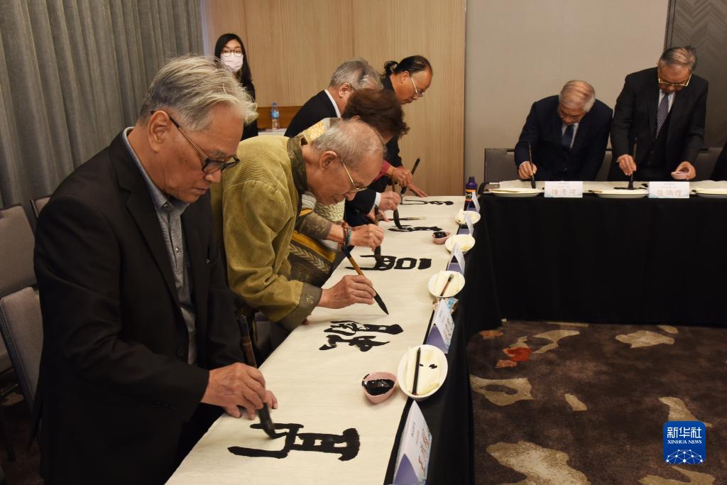 評選結果揭曉后,來自臺灣中華書學會的多位書法家和參會嘉賓現場潑墨揮毫,以多種字體在長卷上共同書寫“融”字。