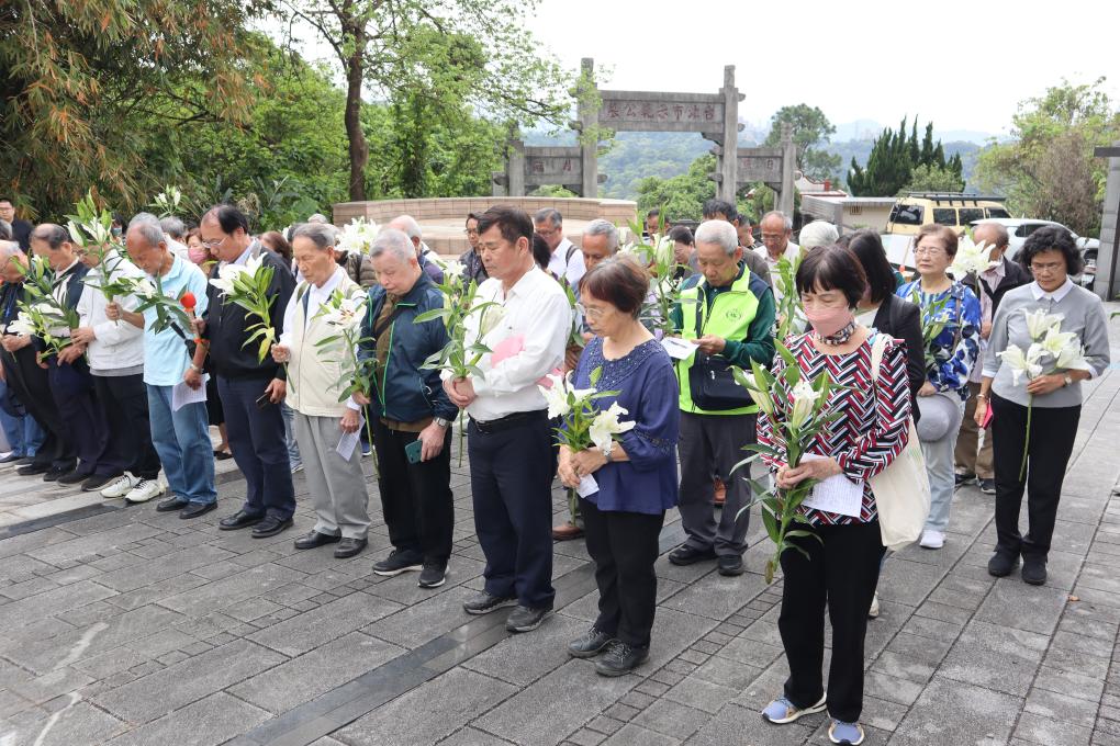 3月29日,活動參與者在白色恐怖政治受難者春祭掃墓追思活動上默哀。新華社記者 齊菲 攝