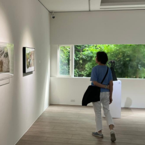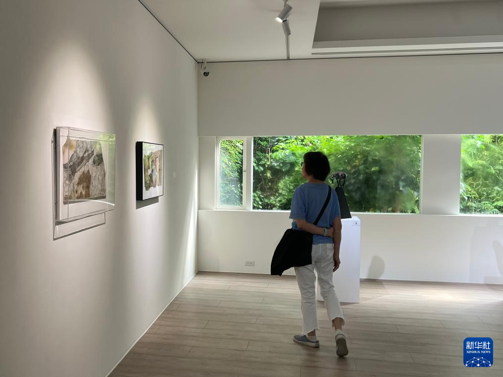 4月22日,參觀者在臺南大新美術館觀看“‘共南風’大新兩岸雙城青年藝術交流展”。新華社記者 齊菲 攝