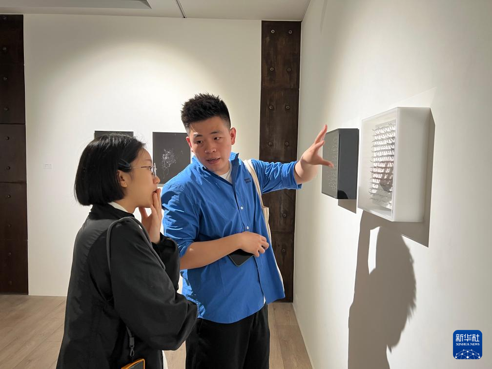 4月22日,青年藝術家在臺南大新美術館舉行的“‘共南風’大新兩岸雙城青年藝術交流展”上交流。新華社記者 齊菲 攝