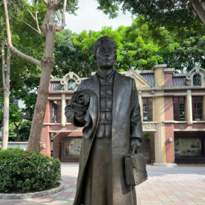 這是臺北市內一座紀念蔣渭水的銅像(8月1日攝)。新華社記者 王承昊 攝