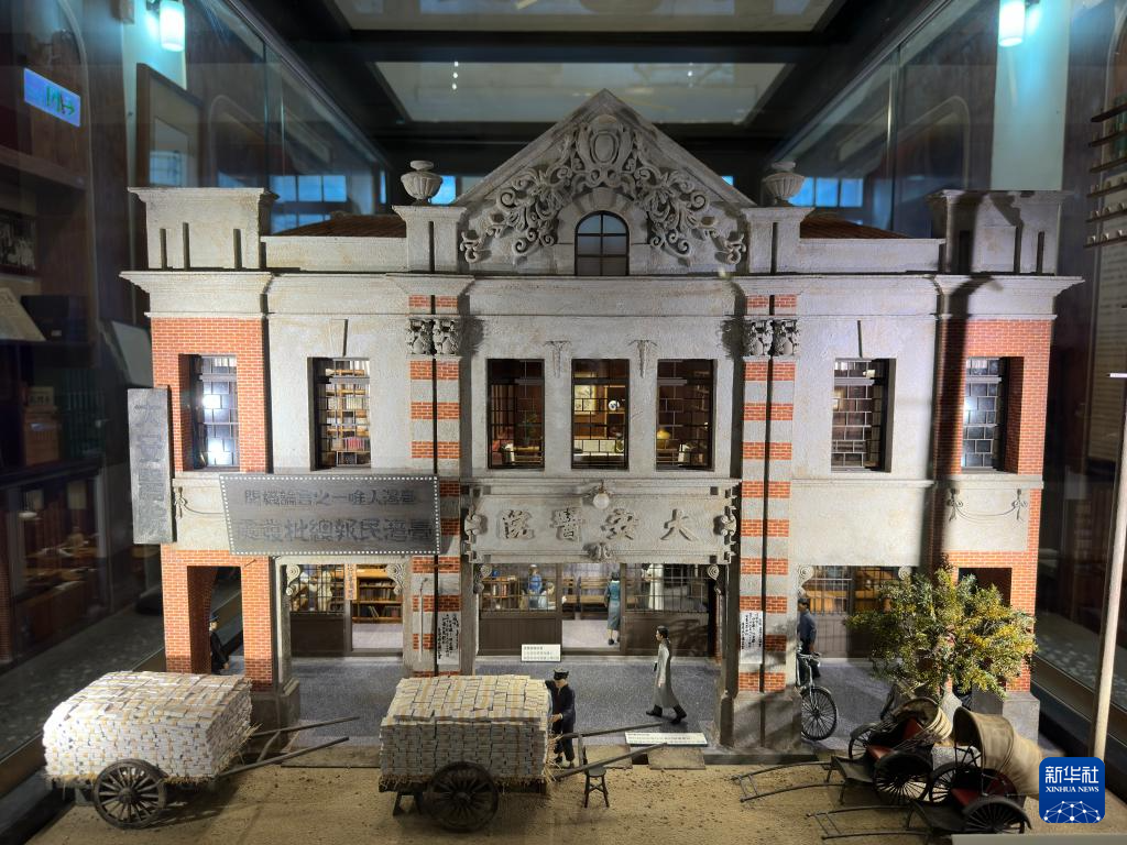 這是“渭水驛站”展出的大安醫院還原模型,類似圖書館的辦公場所是“臺灣文化協會”總部和《臺灣民報》編輯部(8月1日攝)。新華社記者 王承昊 攝