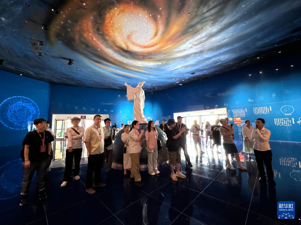 9月7日,臺灣青年在貴州省黔南布依族苗族自治州參觀平塘國際天文體驗館。新華社記者 周宣妮 攝