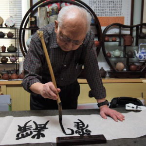 臺北鬧市中,隱著一間“洪廬藝術小筑”,是臺灣書法家洪啟義的工作室。被兩岸書法界譽為“當代篆隸能手”的洪啟義,雖已年至耄耋,仍時?!般@”進這方不大的天地,靜心揮墨創作。