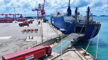 18日上午,伴隨著汽笛聲,“臺北快輪”緩緩駛入平潭金井港區,船上滿載液晶面板、水果等商品。這是“臺北快輪”自2017年12月開行以來,自臺北港發運的第1000航次。